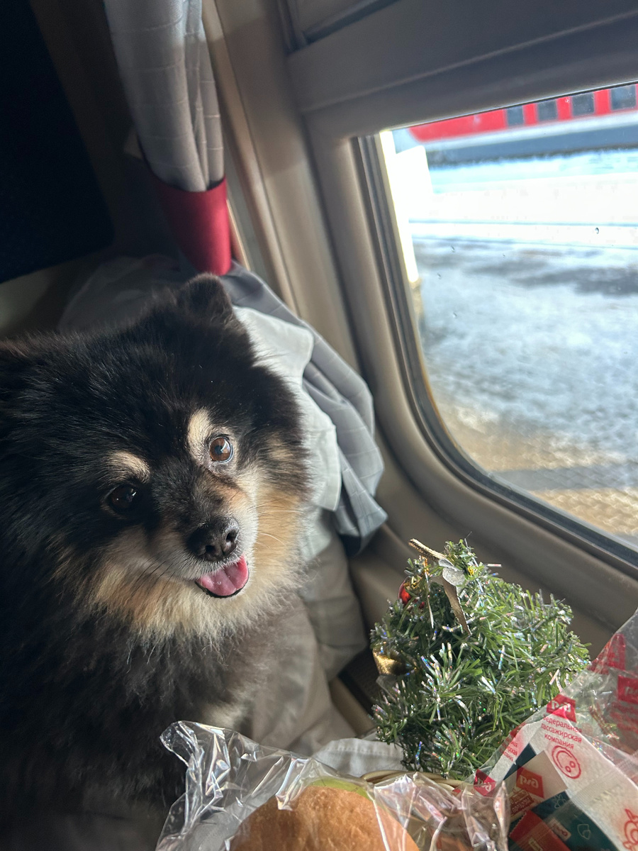 Привет, мои пушистохвостики! Этот Новый год я провёл на юге. Мы поехали к друзьям моих недоразумений на Чёрное море. На поезде. Это такая будка большая, которая быстро движется, и Батя не за рулём. Прикольная штука. Можно в окошко смотреть, можно под сиденье залезть, а когда надоест, то на полке нянек можно лапы расположить с комфортом. Мне лично понравилось. Правда, пришлось охранять моё купе, ведь за дверью постоянно кто-то ходил. Я лаял и рычал, чтобы знали, что серьёзный пёсик едет, чтобы всё было без глупостей. На остановках выходили гулять с моими недоразумениями. Что я хочу сказать: очень много собачек путешествуют на поезде по нашей красивой стране. С парочкой таких я познакомился. Кожаные соседи очень лояльно относились ко мне, как и проводники. Никаких конфликтов не возникло. Хотя пару раз мне удалось пробежаться по коридору в сторону вагона-ресторана, но я быстро был пойман Батей и отнесён в своё купе, поэтому про вкусняхи в вагоне-ресторане ничего сказать не