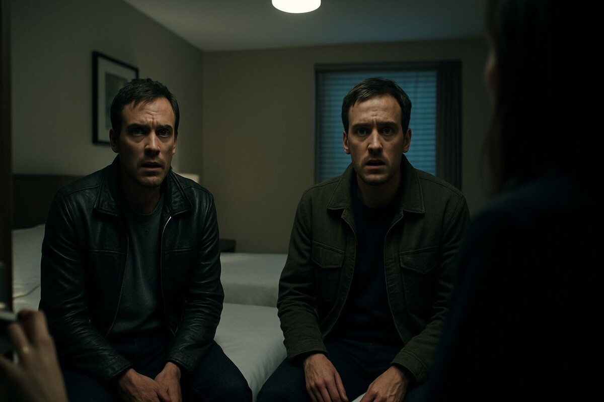 Я оттолкнула дверь. Она со скрипом открылась. В стандартном номере отеля с двумя односпальными кроватями стояли они. Оба. Повернулись ко мне с идентичными лицами, искаженными одинаковым шоком. Я смотрела с одного на другого, и мозг отказывался обрабатывать картинку. Это было как смотреть в разбитое зеркало, где каждое отражение жило собственной жизнью.