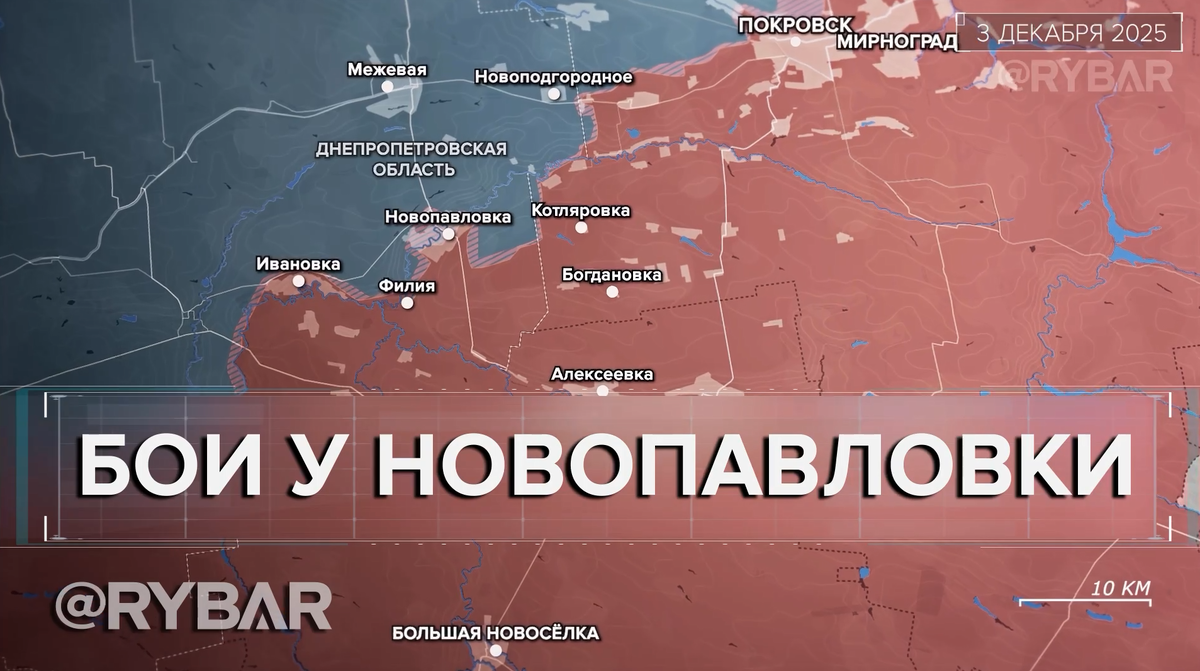 К началу декабря Новопавловка оставалась ареной ожесточенных боёв. После первичного прорыва российских войск на территорию села в ноябре противник перебросил на участок дополнительные резервы и стабилизировал обстановку. 🔸Стремясь переломить ход боёв, ВС РФ к 2 января накопили резервы на правом берегу Соленой и начали атаки на позиции противника в лесной массиве северо-западнее Филии. К 5 января они выбили ВСУ из леса и расположенных в его районе опорников, что позволило им установить огневой контроль над трассой О-041415. 🔸В то же время на правом фланге направления российские войска к 3 января зачистили территорию Молодецкого и начали продвигаться к соседнему Новоподгородному. К 11 декабря штурмовые группы зацепились за застройку населенного пункта и в течение следующей недели постепенно расширяли зону контроля на его окраинах. 📌 На текущий момент на направлении продолжаются тяжелые бои. Противник пытается вернуть контроль над Ивановкой, в то время как ВС РФ постепенно отрезают пут