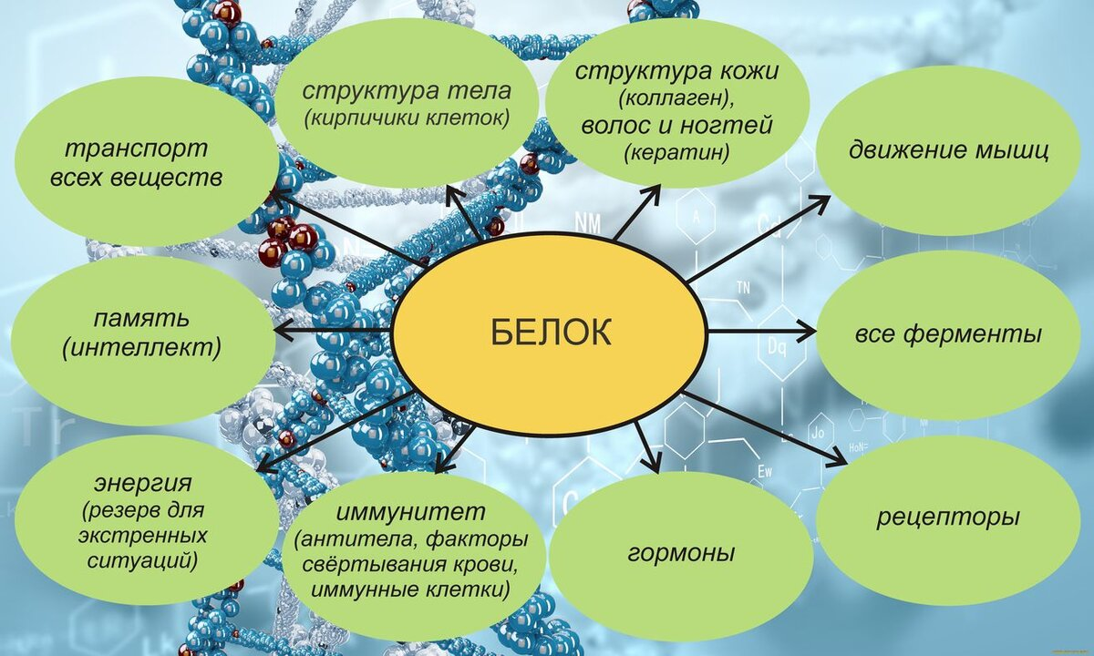 Представьте, что ваше тело — это высокотехнологичный мегаполис. Так вот, белки — это и строительные краны, и кирпичи, и транспортная система, и полиция, и даже диспетчеры на важнейших заводах (ферменты и гормоны). Из них строятся мышцы, кожа, волосы, ногти, антитела иммунитета, гемоглобин и большая часть нашего мозга.