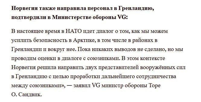 🗞️Норвегия направила двух военнослужащих в Гренландию для помощи в обеспечении безопасности острова на фоне заявлений и угроз со стороны