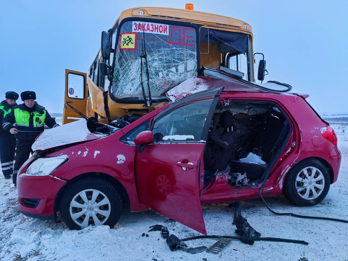 Перевозивший школьников в военкомат автобус столкнулся с легковушкой в Красноярском крае