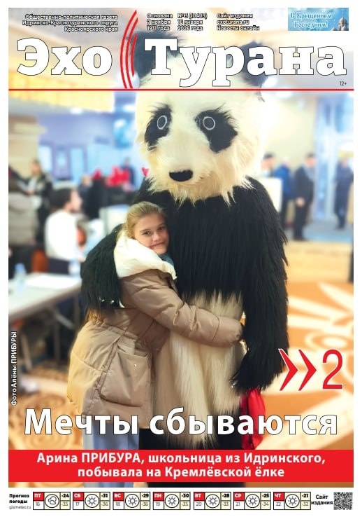 ! Уже завтра выходит очередной номер газеты «Эхо Турана» Читайте в свежем выпуске: СРОК – ТРИ ГОДА: как избежать ответственности за неиспользование земельных участков – отвечает Татьяна ГОЛДОБИНА, руководитель Управления Росреестра по Красноярскому краю. ВЕРНУТЬ ЛЮДЯМ ДОМ: Наталия РЕУЦКАЯ рассказала о том, как наши добровольцы помогали жителям Курской области – репортаж с места событий. КУЛЬТУРА: Елена ЗАМЯТКИНА, директор краснотуранского Историко-этнографического музея, и Виктор ЛИНДТ, директор краснотуранской Централизованной библиотечной системы, подвели итоги работы в прошедшем году. «ГОРЯЧИЙ» РАЗГОВОР: об особенностях работы пожарного рассказывает Пётр КРИВОХИЖА. Уникальное интервью с заместителем начальника пожарной части № 53. СПОРТИВНЫЙ ПЪЕДЕСТАЛ: вот уже несколько лет Андрей ЗОЛИН делится любовью к боевым искусствам с юными краснотуранцами. Беседуем со старшим тренером Дворца спорта «Русич». ПРАВОСЛАВИЕ: народные обычаи и приметы на праздник Крещения Господня. Что нельз