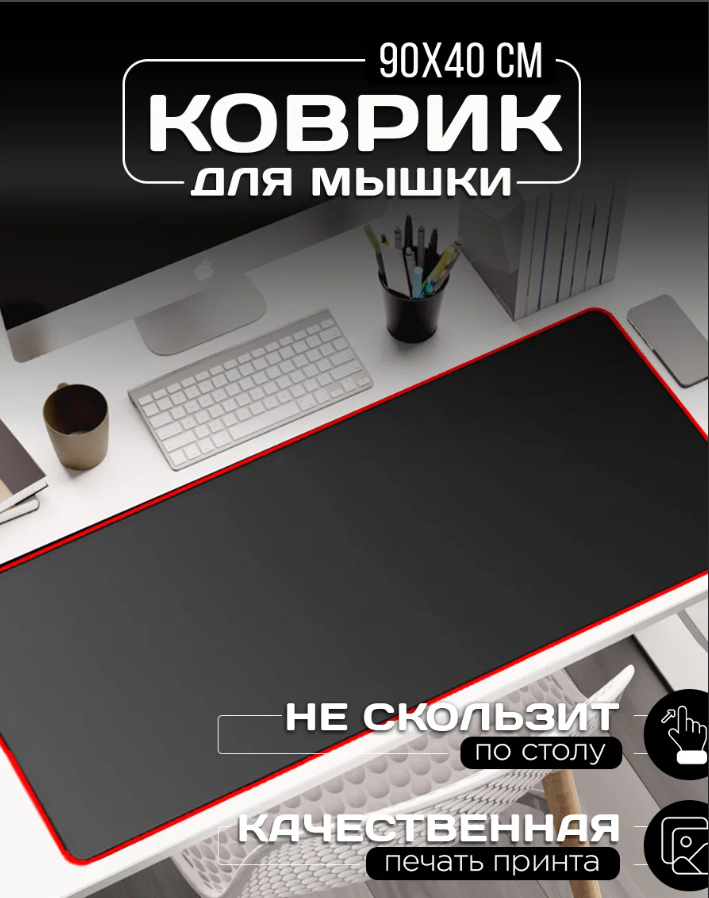 Большой коврик для мыши "Черный с красной окантовкой" (90х40 см)