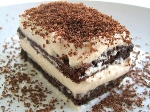 Выложить слоями коржи и крем. По желанию можно добавить подсластитель, но без него и так вкусно. Охладить, затем подавать на стол к чаю или кофе.