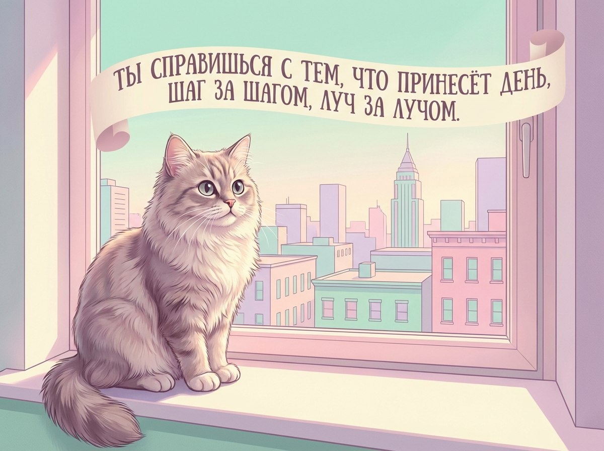 Я вижу, как первый свет бережно раскладывается по комнате, как мир замирает на вдохе перед новым днём. Это утро — тихое эхо недавнего Старого Нового года: в воздухе по-прежнему кружится обещание обновления, и оно мягко касается твоей души. Пока город просыпается, подари себе несколько мгновений тишины. Дыши ровно, как я, когда спокойно наблюдаю за рассветом из своего тёплого уголка. В тебе уже есть всё, чтобы прожить этот день с достоинством и теплом: опыт, который ведёт, и сердце, способное выбирать добро. Я рядом мысленно, как пушистый страж твоего утра, и шепчу: ты справишься с тем, что принесёт день, шаг за шагом, луч за лучом.