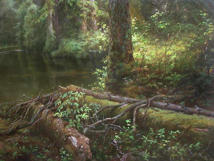 ! Название работы: Шепот леса ( Фрагмент ) https://rilmark.ru/artworks/20140928:167-273-238 холст/масло 60см x 90см 2013 г. дремучий лес, лесное озеро, солнце в лесу, Шепот леса,художник Виталий Зайцев Приглашаем к просмотру других работ этого автора! Автор: Зайцев Виталий Геннадьевич, галерея работ: https://rilmark.ru/authors/18620