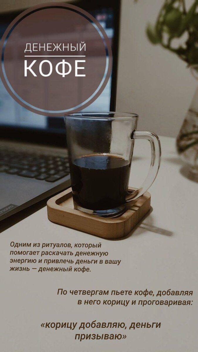 💵Сегодня ДЕНЕЖНЫЙ ЧЕТВЕРГ, поэтому пьем ДЕНЕЖНЫЙ КОФЕ 👍 ⠀⠀ ☕️Корицу добавить в готовое кофе и размешать по часовой стрелке, приговаривая слова. ⠀⠀ ⠀⠀ "Как корица вкус кофе прибавляет, так и денежки у меня в кармане прибывают! Да Будет Так!" ⠀⠀ Визуализируем в это время мощный поток денежных средств💵 в ваш кошелек, карту, в вашу жизнь и т.д. Денежный кофе готов!⠀⠀ ⠀⠀ ☕️ Если вы заказываете кофе в кофейне, то сразу заказывайте кофе с корицей и попросите ложку, чтобы размешать кофе и прошептать волшебные слова. Можно также корицу добавить и в какао ( для тех, кто не пьет кофе). Вообщем, экспериментируйте. ⠀⠀ #денежныйчетверг