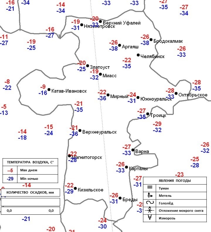 Морозы в диапазоне от 9 до 38 градусов зафиксированы в Челябинской области, передает корреспондент Агентства новостей «Доступ». По сравнению с многолетним уровнем это на 12-15 градусов холоднее. «Температура воздуха днем 14 января была минус 19-28, на крайнем западе – до 9 градусов, минувшей ночью – минус 28-35, на крайнем западе – до 16, в пониженных частях рельефа – до 38», – сообщили в региональном ЦГМС. В четверг процесс похолодания остановится, а с пятницы тенденция на повышение температуры будет уже заметнее, хотя по сравнению с климатической нормой среднесуточные температуры пока останутся ниже обычного. Ожидается, что 16 января центр антициклона, который и принес аномально холодную погоду на Урал, отойдет еще дальше на восток.