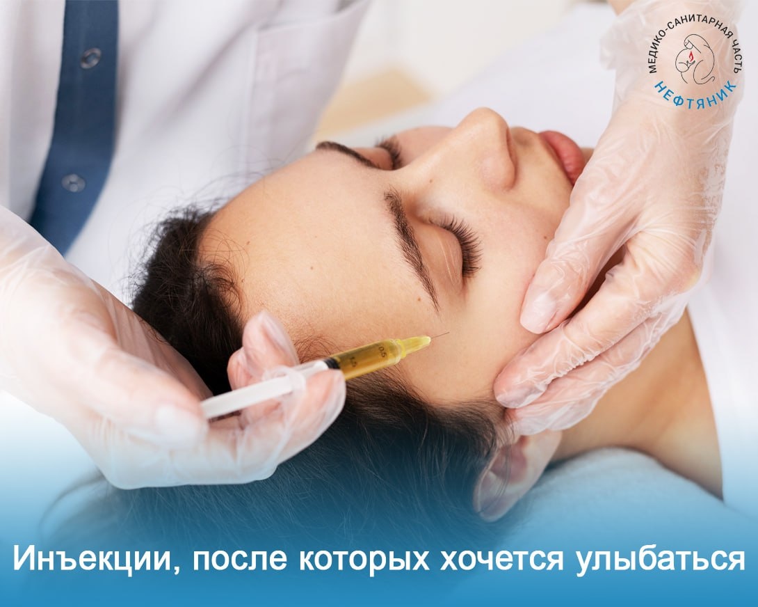 ✨ Когда в зеркале хочется видеть более отдохнувшее, свежее лицо – это вполне естественное желание. Иногда коже нужна небольшая поддержка, чтобы снова засиять и выглядеть живее после стресса, погоды и напряжённого ритма жизни. В поликлинике «Нефтяник» инъекционные процедуры выполняет врач, которому можно доверять: Анна Борисовна Котельникова – дерматовенеролог, косметолог, кандидат медицинских наук. Она работает только с сертифицированными препаратами и всегда делает план под конкретного человека, а не «по стандарту». ✅Плазмолифтинг – вариант для тех, кому не хватает увлажнённости и здорового сияния. Используется собственная плазма пациента, кожа становится плотнее и ровнее, первые изменения заметны уже после первой процедуры. Восстановление занимает 1–2 дня, эффект накапливается курсом и может сохраняться до двух лет. ✅Ботулинотерапия с препаратами «Диспорт» и «Ксеомин» помогает разгладить мимические морщины на лбу, в межбровье, вокруг глаз. • первые результаты заметны уже на 2–3 д
