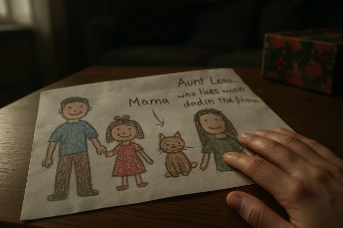 «Это… это просто коллега, дочка. Не нужно рисовать всех подряд», — он засмеялся, фальшиво и громко.