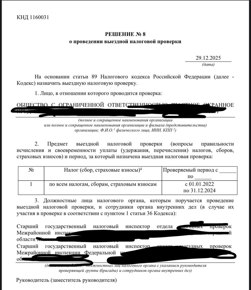 Данное решение по всем налогам и сборам, но т.к. это ЧОП, то мы прекрасно понимаем зачем они пришли
