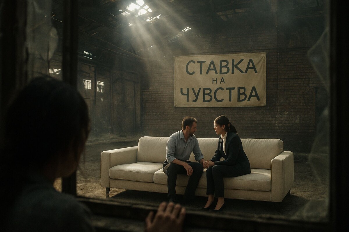 Посреди бетонного пустыря, под лучом пыльного света из дыры в крыше, стоял наш диван. Тот самый, угловой, кремового цвета, который мы выбирали вместе четыре года назад, когда переезжали в новую квартиру. На его подлокотнике все еще была темная кофейная капля от моего пролитого латте. А над диваном, прикрепленный к голой кирпичной стене, висел самодельный плакат. На нем крупными, кривыми печатными буквами было выведено: «СТАВКА НА ЧУВСТВА».