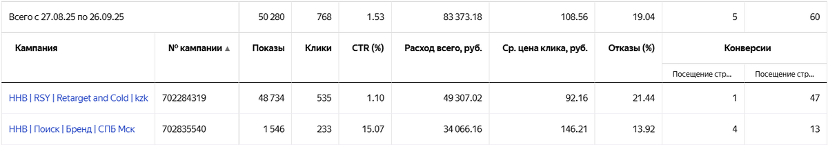 Самое важное открытие второго месяца — ретаргетинг оказался золотой жилой. Кампания "RSY | Retarget and Cold" принесла 47 билетов и 1 заявку на экспоместо при стоимости клика всего 92 рубля — это был лучший показатель среди всех каналов. Это подтвердило нашу гипотезу о том, что пользователям нужно несколько касаний перед конверсией, особенно в B2B-сегменте.