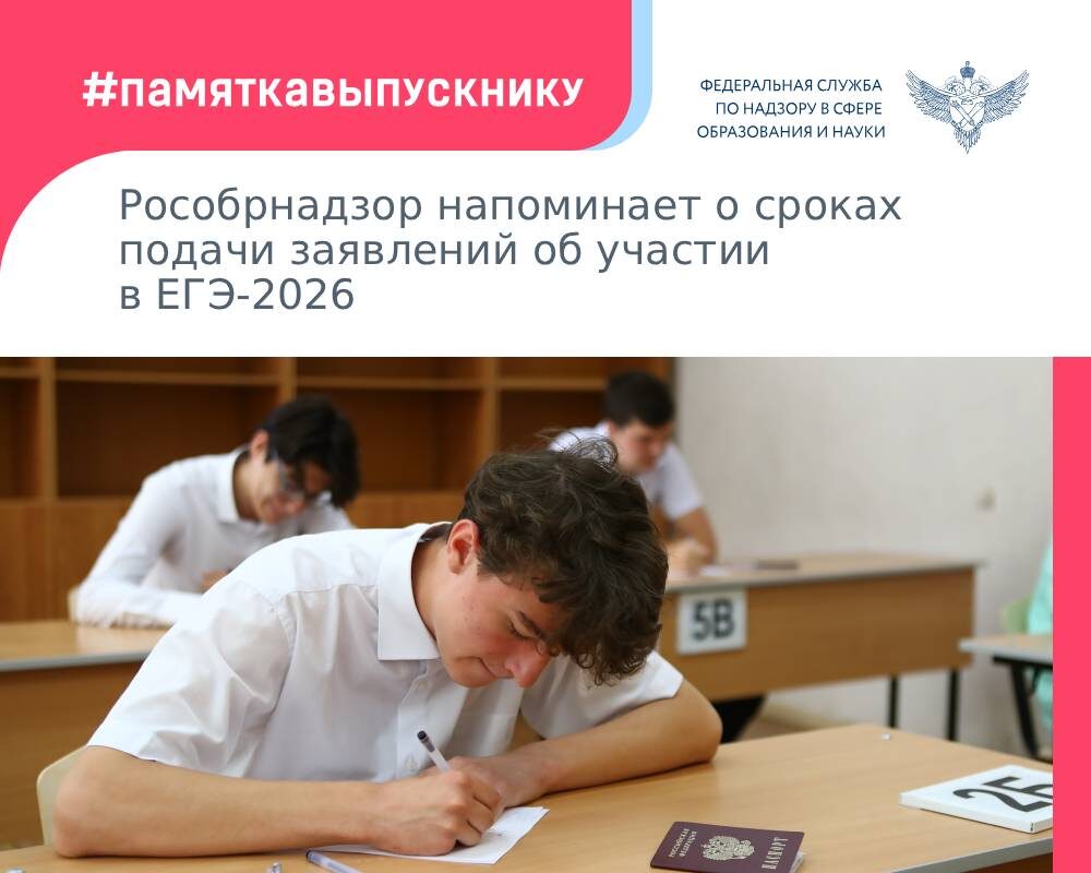 Рособрнадзор напоминает о сроках подачи заявлений об участии в ЕГЭ-2026