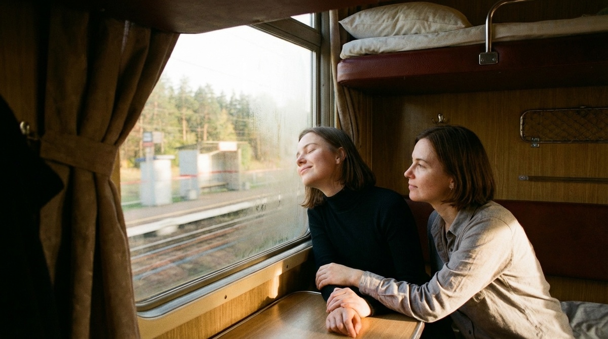 Поезд плавно тронулся, увозя Алю и Алёну в неизвестность. За окном мелькали деревья, поля, маленькие станции — всё это сливалось в пёструю ленту, символизирующую начало новой жизни. Аля прижалась лбом к прохладному стеклу и глубоко вдохнула. В груди больше не было того ледяного кома, лишь лёгкое волнение и… надежда.