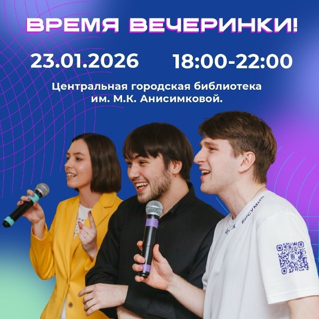 ! 🥳 На связи "Студвечерина-2026" в библиотеке. Приглашаются все студенты! Тебя ждут мастер-классы, игры, танцы, караоке, весёлые лотереи и, конечно, развлекательно-интеллектуальная БИСУмиЯ! 🤩 Не упусти шанс стать частью грандиозного события! Приходи в ярких нарядах и с хорошим настроением! Это будет незабываемо! 📍23 января с 18:00 до 22:00 📍Центральная городская библиотека им. М.К. Анисимковой. 📍ул. Дружбы Народов, 22. ✅ Вход свободный. 👉 Заходи в мероприятие СтудВечерина 2026, смотри, как это было в предыдущие годы, и нажимай на кнопку, что придёшь. #mubisnv #библиотекинижневартовска #студвечерина2026 #бисумия #вечеринка