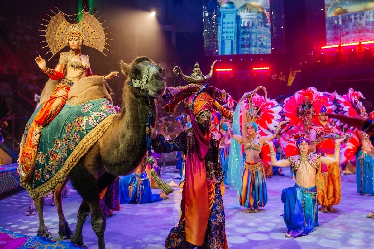 С 7 февраля в Нижегородском государственном цирке им. Маргариты Назаровой Заслуженный артист России Гия Эрадзе и Российская государственная цирковая компания представляют шоу «Песчаная сказка». Вы ещё не с нами в Telegram? Подписывайтесь, всё самое интересное тут! Удивительные аттракционы, титулованные артисты продюсерского центра Гии Эрадзе и компании«Росгосцирк», авторские декорации и эксклюзивные костюмы – премьера нового циркового спектакля сединой сюжетной линией! Шоу Гии Эрадзе «Песчаная сказка» – уникальный цирковой театрализованный спектакль, объединенный единой сюжетной линией, внутри которой каждый номер становится неотъемлемым элементом шоу. Сказочный Джинн и его волшебная лампа в считанные секунды переместят в мир загадочных тайн чарующего востока. Во время представления зрители смогут побывать в разных историях: всё начинается с восточного базара, плавно переходящего к путешествию во дворец Шейха и каравану величественных верблюдов, которые рисуют витиеватые узоры на манеж