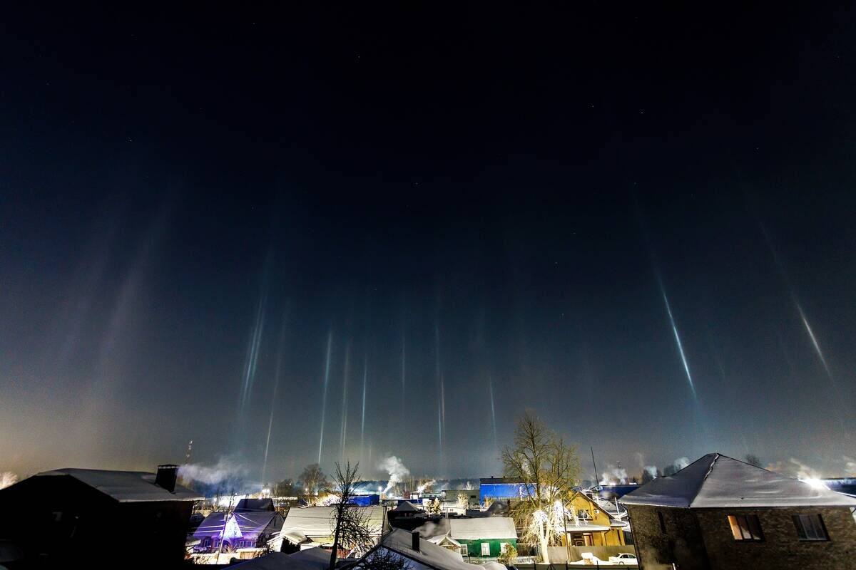 Вечером 14 января жители Брянска увидели в небе светящиеся столбы - оптическое явление, которое многие засняли и разместили в соцсетях. Горожане выразили восхищение, некоторые связали свечение с НЛО или призраками. Фотограф Александр Пивень опубликовал снимок во «ВКонтакте», где столбы напоминают гирлянду или метеоритный дождь. Физики объясняют: столбы возникают от отражения света на ледяных кристаллах в воздухе, чаще в холодное время при низких температурах. То есть это просто оптический эффект, и ничего сверхъестественного здесь нет. ФОТО: Александр Пивень. Немногим ранее Жителей Климовского района попросили воздержаться от крещенских купаний.