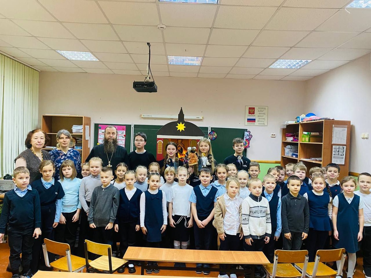 Учащиеся и преподаватель воскресной школы нашего Ахтырского храма показали ребятам нескольких начальных классов Рождественское представление "Вертепное действие". Перед каждым представлением отец Димитрий обращался к ребятам с кратким поздравительным словом, напоминая о великом празднике Рождества Христова. Затем все вместе пели тропарь праздника. Преподаватель нашей воскресной школы Ольга Анатольевна Павленко напоминала ребятам о красивой древней традиции показывать рождественский спектакль. Ребята живо и эмоционально реагировали на представление. Надеемся, это помогло им соприкоснуться с воспоминаемыми рождественскими событиями. Сердечно благодарим Людмилу Владимировну Маняхину и Татьяну Анатольевну Евсееву за прекрасную организацию встречи.