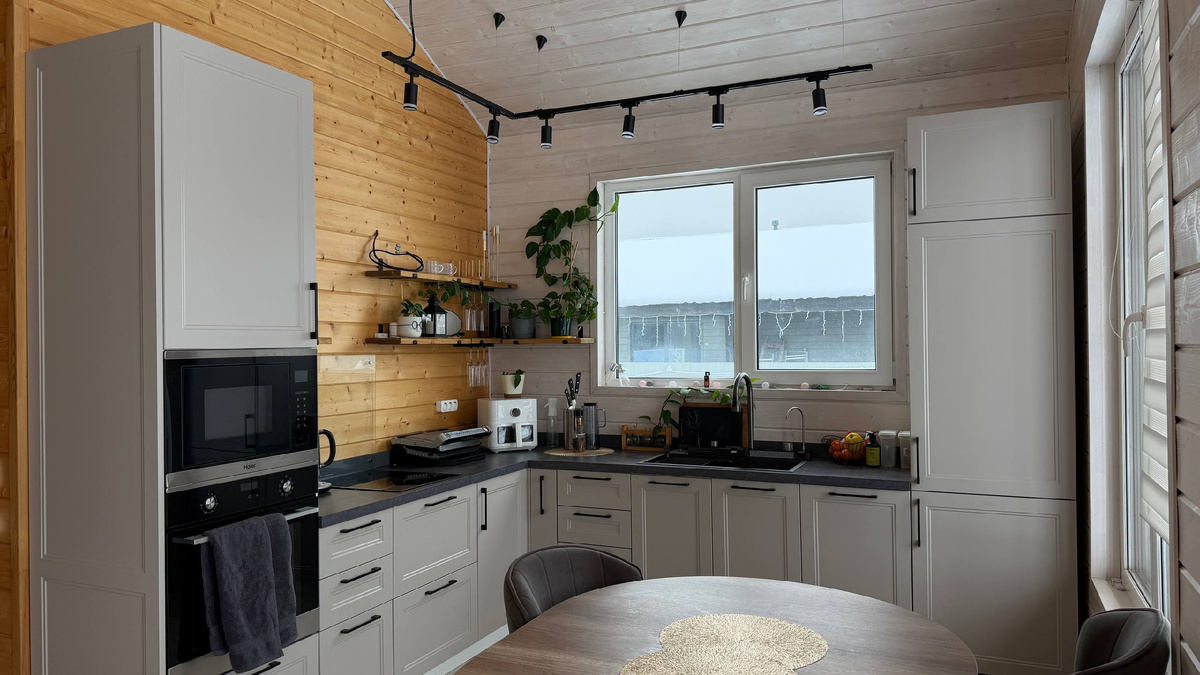 Кухня — не просто помещение для приготовления еды. Это многофункциональное пространство, выполняющее ключевые социальные, бытовые и психологические роли в жизни семьи. К выбору кухни мы подошли максимально ответственно, потому что понимали, что большую часть времени мы будем находиться на ней, так как у нас кухня-гостиная, ну и, соответственно, все гости и друзья в первую очередь будут видеть и обсуждать ее. Жена сразу начала создавать проекты для визуализации пространства: как это будет выглядеть, какой цвет, фурнитура и все остальное, какая техника что должна содержать и какие функции выполнять. В дальнейшем Елизавета (так зовут мою спутницу по жизни) придумала обставить кухню просто из картона, чтобы посмотреть, что нам вообще необходимо и как больше нравится. Идея была гениальной, это очень упростило выбор и дальнейшие работы, мы сразу определились и перешли к подбору фасадов и материалов. Пришла пара к выбору техники, это был один из самых сложных этапов в обустройстве, нужно бы