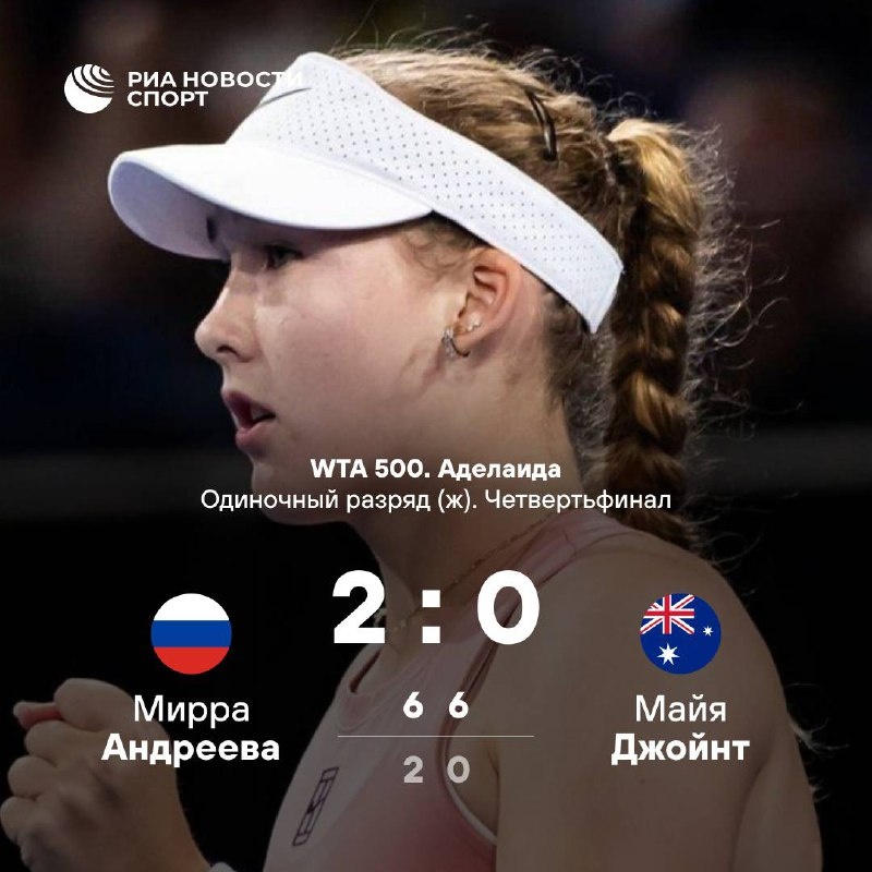 Привет, друзья! Сегодня в мире тенниса произошло событие, которое не может оставить равнодушным ни одного поклонника этого вида спорта. Мирра Андреева, молодая и талантливая российская теннисистка, продемонстрировала впечатляющий результат, обыграв Майю Джойнт в четвертьфинале турнира в Аделаиде всего за 1 час и 6 минут. Этот успех выводит Мирру Андрееву в полуфинал, где её ждёт битва с другой российской спортсменкой. Это событие подчёркивает растущую силу российского тенниса и привлекает внимание к молодым талантам.