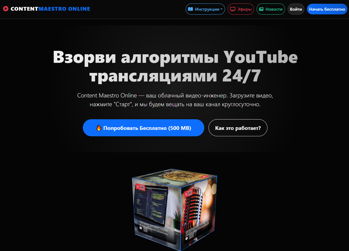 Приветствую, друзья! Недавно я рассказывал, как создал сервис Content Maestro Online — инструмент, который позволяет запускать бесконечные трансляции на YouTube, выключать компьютер и уезжать по делам. Статья вызвала живой отклик, и в комментариях один из подписчиков (музыкант) написал вещь, которая заставила меня задуматься: "Попробовал. Действительно удобная вещь. Но жаль, что только YouTube. Мне нужен RuTube..." И я понял: в 2026 году ограничиваться одной платформой нельзя. Российские блогеры активно осваивают Rutube, а инструменты для автоматизации там всё еще "каменного века" (OBS, включенный ПК, нервы). Я принял вызов. И сегодня я представляю вам Content Maestro v2.0 — теперь с полной поддержкой Rutube и собственной Витриной Эфиров! Если вы пропустили прошлую статью, напомню кратко. Алгоритмы видеохостингов (и YouTube, и Rutube) обожают прямые эфиры. Но запускать их с домашнего ПК — это дорого (счета за свет), шумно и ненадежно (интернет может отвалиться). Мой сервис решает эту