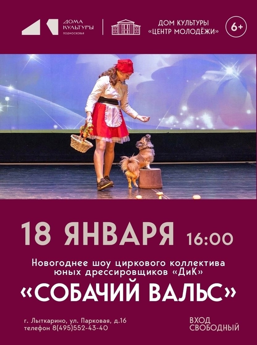 🎄Приглашаем в ДК "Центр Молодежи" на новогоднее шоу "Собачий вальс" от циркового коллектива юных дрессировщиков "ДИК", где пушистые артисты удивят зрителей выполнением трюков.