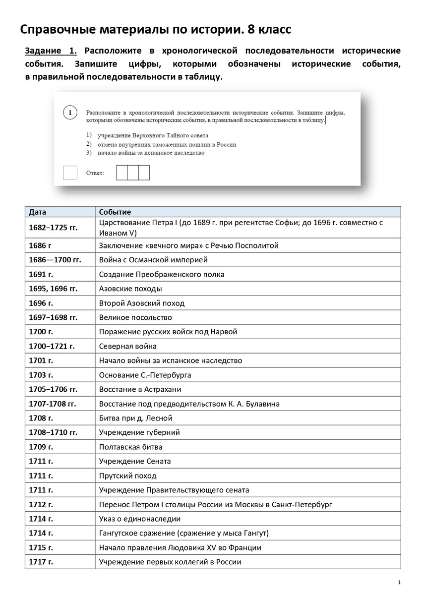 ВПР. ИСТОРИЯ 8 КЛАСС. МАТЕРИАЛЫ ДЛЯ ПОДГОТОВКИ (ШПАРГАЛКА)