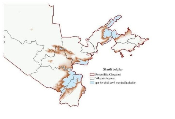 Согласно экстренной гидрометеорологической информации, в период с 16 по 19 января 2026 года лавинная опасность прогнозируется в ряде горных районов. В Кашкадарьинской области предупреждение касается Дехканабадского, Китабского, Камашинского и Шахрисабзского районов. В Сурхандарьинской области указаны Бойсунский, Кумкурганский, Сарыасийский и Узунский районы. В Самаркандской области неблагоприятные условия ожидаются в Нурабадском, Кушрабатском, Самаркандском и Ургутском районах. В Джизакской области предупреждение распространяется на Бахмальский и Зоминский районы. В Ташкентской области лавинная опасность объявлена в Бостанлыкском, Паркентском и Ахангаранском районах, относящихся к Чаткальской горной системе. В Наманганской области предупреждение относится к Папскому району.