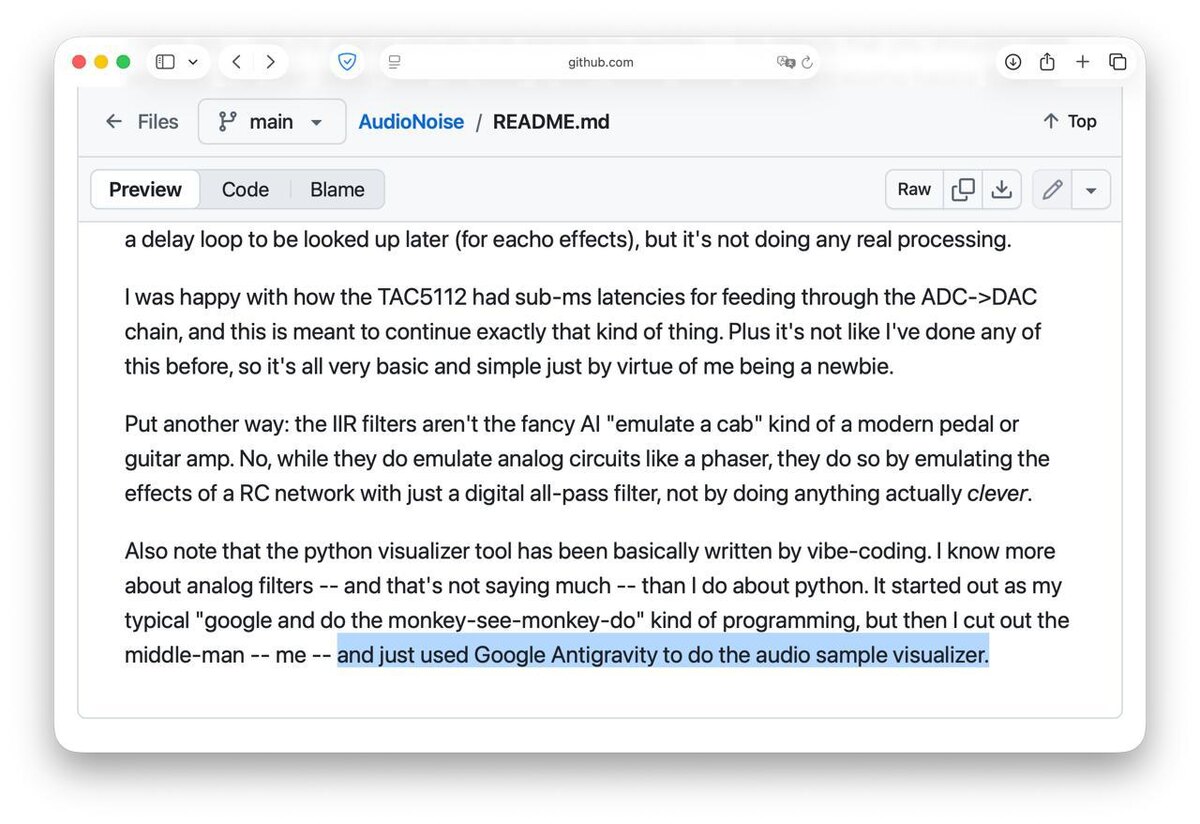 Линус Торвальдс, создатель Linux, разместил на GitHub небольшую утилиту для бас-гитары. В проекте использована технология Google Antigravity. Торвальдс, известный строгими стандартами кода, применил нейронные сети для решения отдельных задач. Торвальдс официально стал вайбкодером. https://dzen.ru/id/5c0e38ff46ef5c00aaa80527