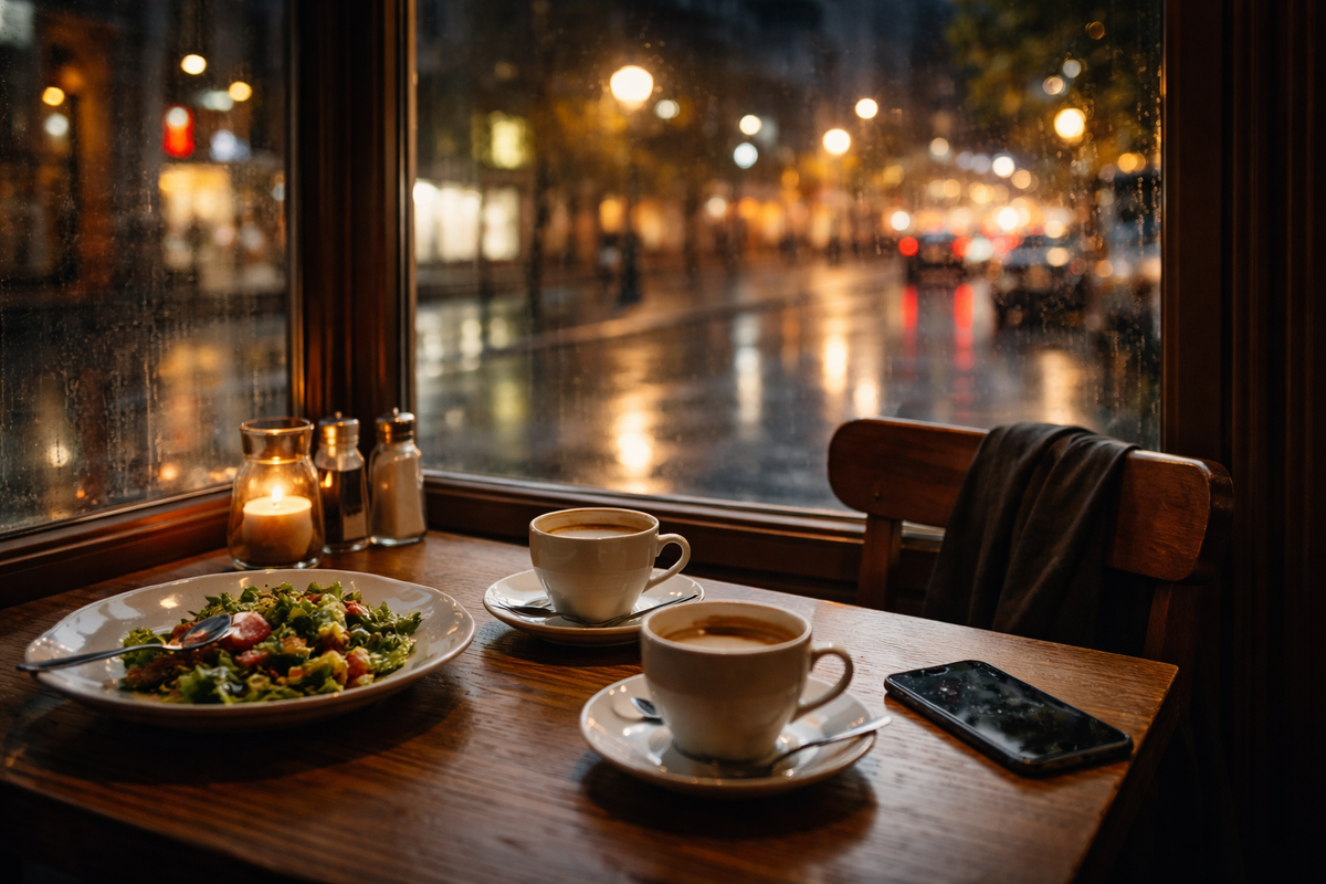В тот вечер город выглядел дружелюбно. Фонари светили старательно, кафе манили меню, люди шли по делам с выражением лёгкой важности. В такие минуты возникает ощущение, что любая встреча сулит историю. Иногда смешную. Иногда поучительную. Чаще обе сразу. Лера пребывала в состоянии боевой готовности. Она сидела дома, уставившись в экран телефона, как сапер на мину. Её роль была высока и ответственна: быть спасательным кругом для Карины, отправившейся в кафе на встречу с неким Марком. Карина, уходя, оставила четкий наказ. «Звони через пятнадцать минут. Если он чудовище, я скажу «Что, труба лопнула?» и умчусь. Если ничего — скажу, что всё хорошо». Лера понимала всю глубину доверия. Она выставила будильник, приготовила скорбный, деловой голос для вранья о лопнувшей трубе. Ровно через пятнадцать минут Лера совершила звонок. И тут же её уши услышали нечто, совершенно выбивающееся из плана. В трубке лился серебристый, радостный поток Карининой речи. Слышался смех, словно лёгкий колокольчик.