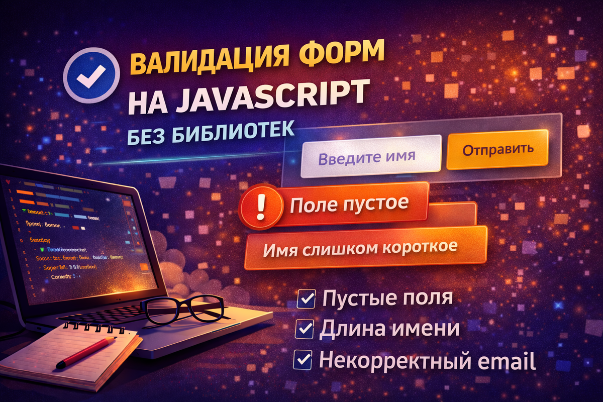 4️⃣ если поле пустое — показываем сообщение Это базовая логика, которая используется почти везде. Добавим ещё одну проверку — длину имени. Почему используется return: Это простой пример, не идеальный, но понятный для новичка. ❌ отправлять форму без проверки