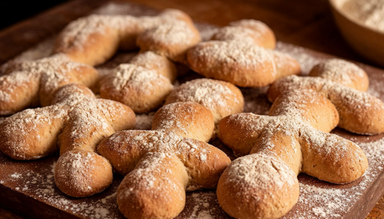 - Выпечка «крещенского» хлеба. Из муки, замешанной на святой воде, пекли небольшие хлебцы в форме креста. Их ели за трапезой и хранили как лечебное средство на весь год.