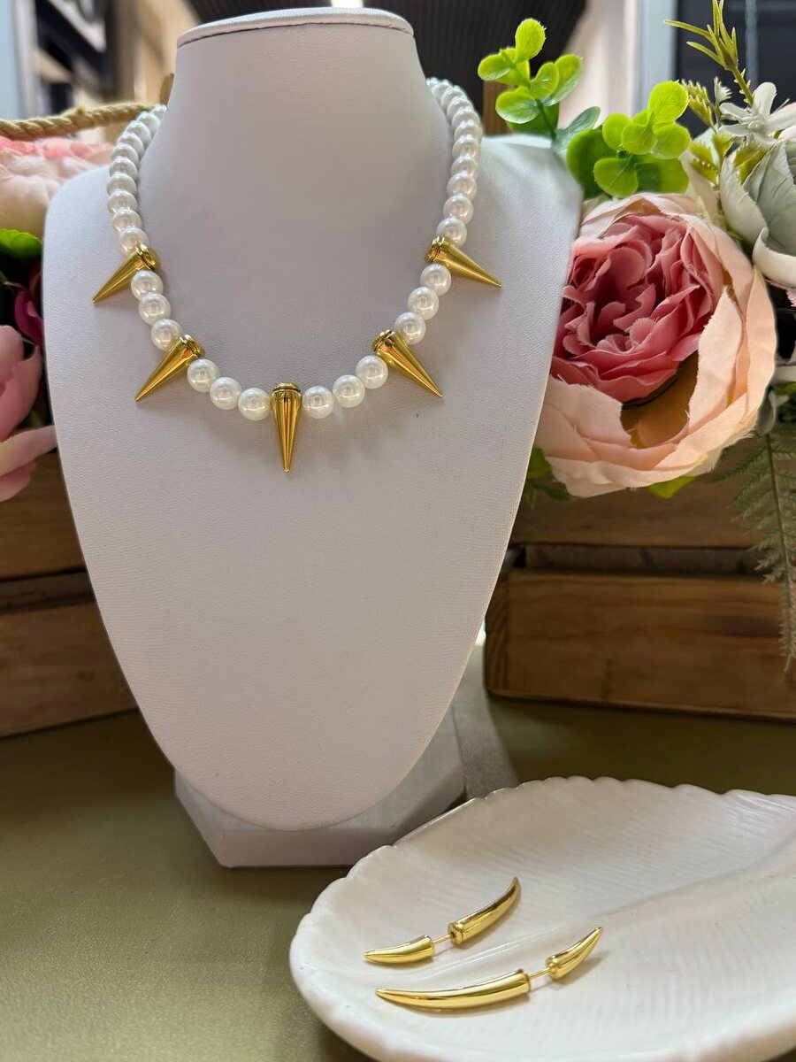 ⚜️ Это колье напоминает древние ожерелья из камней и клыков, которые служили защитой своим владельцам. Мастера переосмыслили первобытную эстетику, сделав её женственной и статусной: на смену грубым формам пришли идеальный жемчуг и сияющее золото. Такой набор — это манифест вашей внутренней силы, облаченный в элегантную форму. Сочетание нежного перламутра и острых акцентов создает интригующий контраст, который делает образ модным в 2026 году.💫 Колье 8700 Серьги 4300 ✨Нажмите для заказа ✉️ Нажмите чтобы задать вопрос
