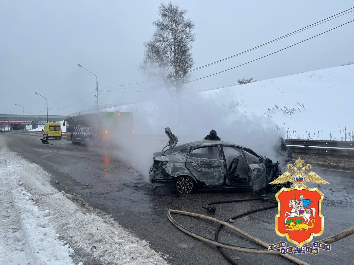 Утро в столичном регионе началось с серьезного ДТП в г.о. Химки. На Шереметьевском шоссе произошло столкновение легкового автомобиля «Киа» и автобуса «ЛиАЗ». Удар был такой силы, что легковушка загорелась. По предварительным данным, иномарка врезалась в автобус, двигавшийся в попутном направлении. В результате аварии водитель легковушки получил травмы и был доставлен в больницу. Сейчас на месте происшествия работают сотрудники Госавтоинспекции. Им предстоит выяснить все детали случившегося.