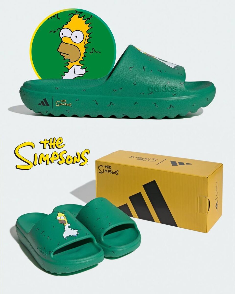 Тапочки с легендарным МЕМОМ Гомера Симпсона в кустах дропнул adidas. Это модель Adilette Slide в зеленом цвете с логотипом и элементами культового шоу. Стоят такие всего 50 долларов (3,9 тысяч рублей).