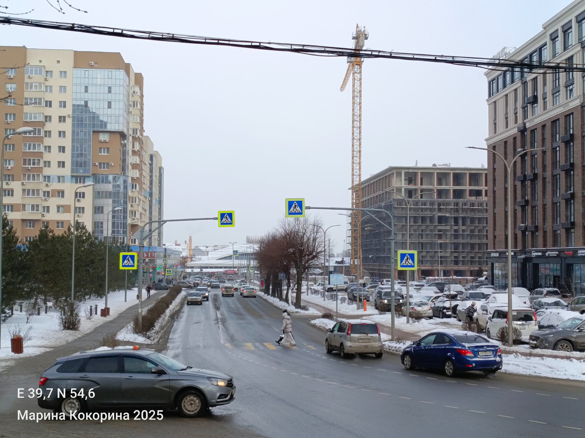 Иногда, чтобы увидеть новый облик города, не нужно ехать на окраины. Достаточно свернуть с привычных троп и оказаться в районах, где история соседствует с амбициозными планами на будущее. Именно такое место — территория вокруг улиц Маяковского и Чапаева в Рязани. Это не просто район, а настоящий пример того, как современная застройка может создавать комфортную и приятную среду для жизни. Давайте прогуляемся! Начинается наша прогулка с впечатляющего строящегося дома по улице Маяковского/Чапаева - «Медный» от «Мармакс». Думаю, что когда его сдадут, он еще больше украсит этот район. Через мост обновляющийся квартал, но чтобы попасть туда, нужно перейти через железнодорожные пути по тому самому «горбатому» мосту. И вот он — вид, который удивляет многих гостей Рязани. За путями разворачивается целый современный мир с европейским названием «Манхэттен». Этот комплекс, состоящий из нескольких высотных корпусов, уверенно заявляет о новых стандартах жилья. А буквально через дорогу от него —
