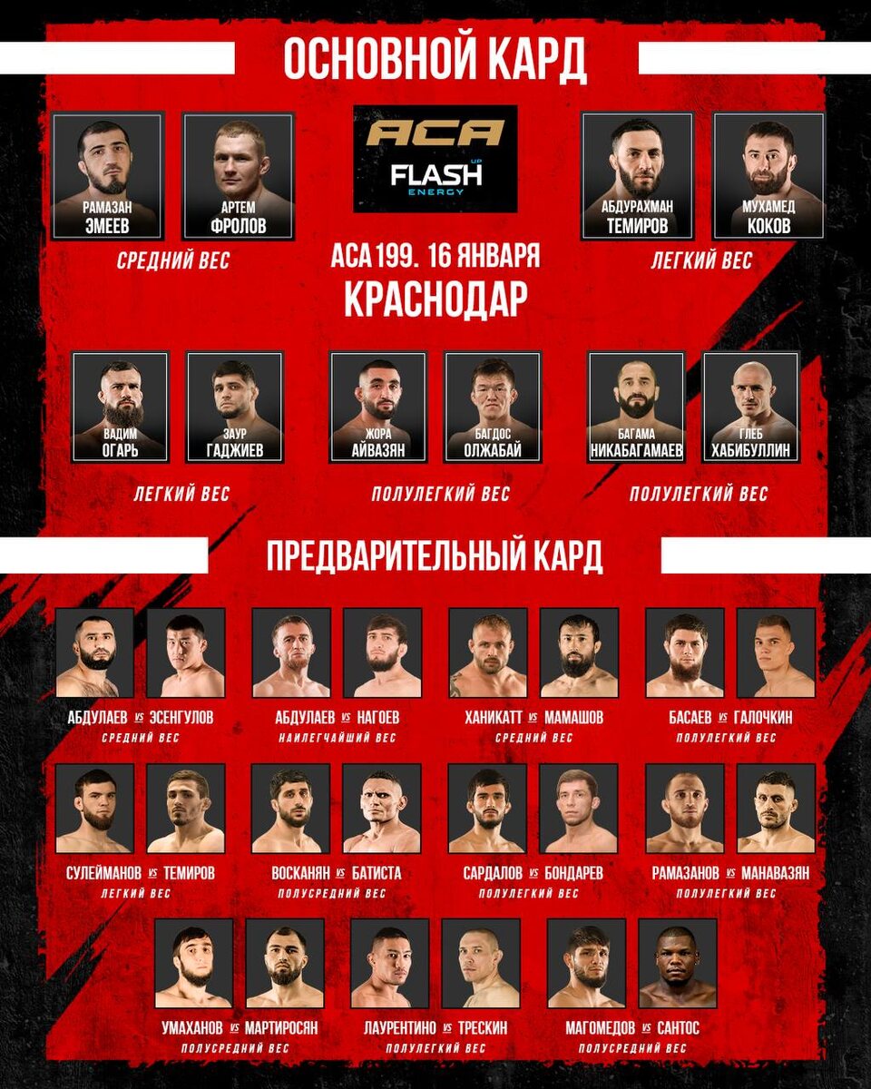 📋Итоговый файт-кард турнира АСА 199 | Краснодар