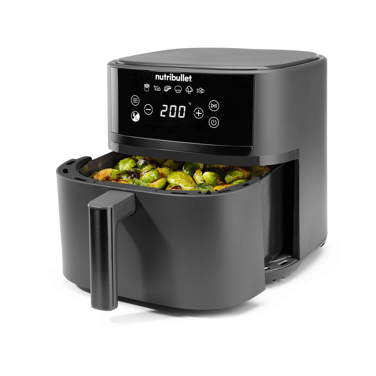 Одна из самых интересных моделей на рынке аэрогрилей — Nutribullet. Этот прибор сочетает в себе простоту использования и внушительные технические характеристики, которые особенно полезны, если вы готовите регулярно и для всей семьи. Этим аэрогрилем я пользуюсь сама и знаю его со всех сторон. В нем можно запекать, тушить, жарить и даже засушивать!
