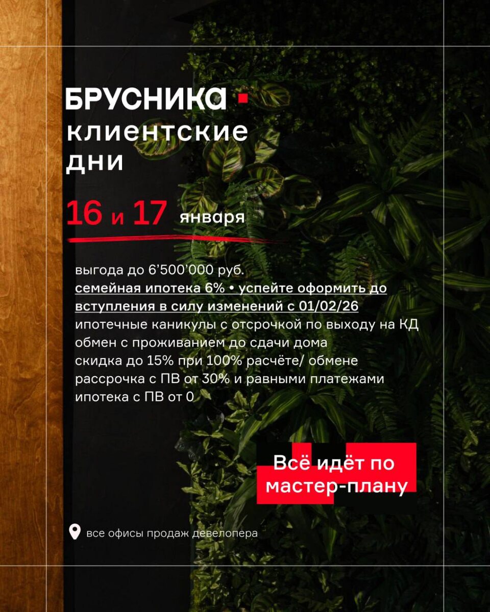 Еще есть возможность записаться с нами на завтра и послезавтра на клиентский день Брусники. Чтобы получить максимальную скидку и лучшие условия по ипотеке)