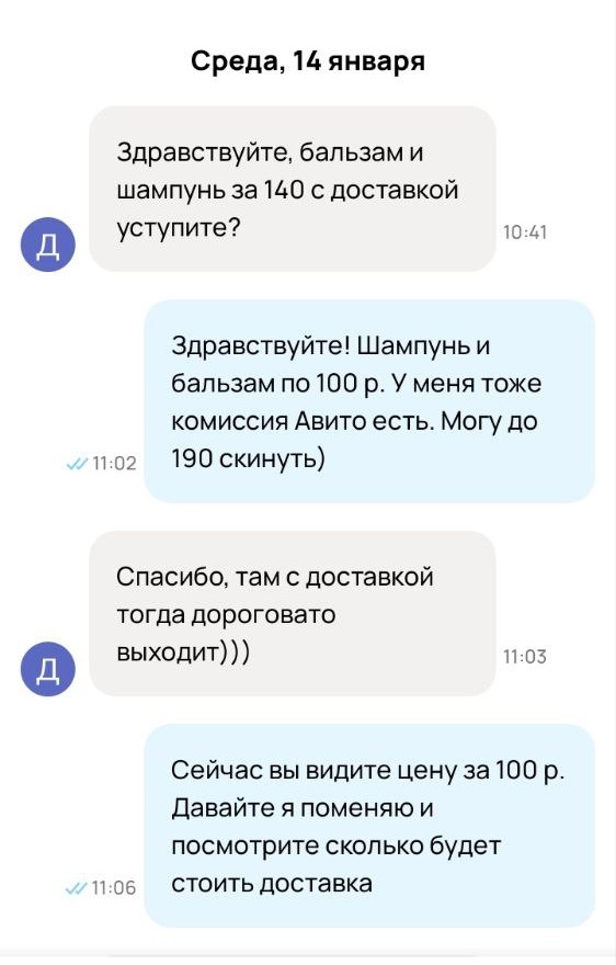 По одному лоту с косметикой сначала написал покупатель #1 и хотел скидку 60 р. от 200. Ведь доставка же дорогая!