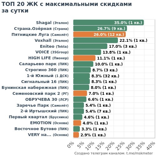 🟩 Честные скидки: 20 ЖК (75 кв.) 🟧 Маркетинг скидки: 10 ЖК (45 кв.) 💎 МАКСИМАЛЬНАЯ ЭКОНОМИЯ 🏆 Эталон • Shagal └🔻17.1M → 49.0M • 3-к 128м²❗️ 🥈 Страна • Страна.Озёрная ├🔻15.6M → 78.1M • 5-к 151м² ├🔻9.4M → 35.1M • 4-к 73м² └🔻7.1M → 35.6M • 4-к 73м² 🥉 Эталон • Voxhall └🔻6.1M → 27.7M • 1-к 41м² 4️⃣ Tekta • Eniteo ├🔻4.5M → 26.7M • 1-к 47м² ├🔻4.4M → 26.0M • 1-к 47м² └🔻4.1M → 34.4M • 2-к 72м² 5️⃣ ЛСР • ОБРУЧЕВА 30 └🔻2.0M → 29.9M • 2-к 66м² 🔑 САМЫЕ ДОСТУПНЫЕ 🏆 Самолёт • Горки Парк ├🔻68к → 6.8M • 1-к 35м² └🔻193к → 15.7M • 3-к 80м² 🥈 Брусника • Первый квартал └🔻410к → 8.9M • 1-к 45м² 🥉 ПИК • Восточное Бутово └🔻300к → 9.0M • 2-к 46м² 4️⃣ Ingrad • Новое Пушкино └🔻207к → 10.9M • 2-к 55м² 5️⃣ ПИК • 2-й Иртышский └🔻597к → 11.2M • Студия 23м² 6️⃣ 1 ДСК • 1-й Южный ├🔻1.2M → 14.9M • 2-к 61м² └🔻1.3M → 15.4M • 2-к 59м² 7️⃣ Самолёт • Квартал Строгино └🔻155к → 15.5M • 1-к 42м² ❗️— лоту меньше месяца 👇 Полная статистика: 📲 В Telegram | 🌐 На MskMeter.ru