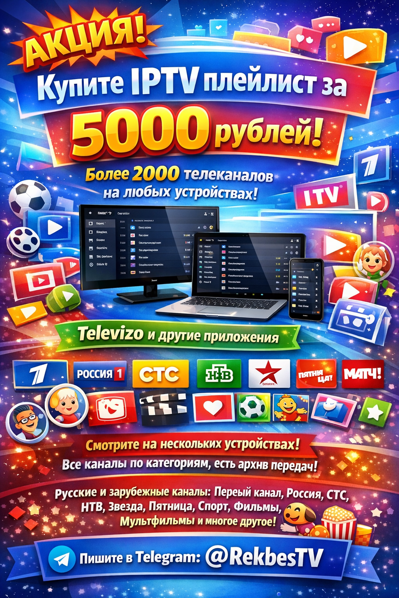 Телевидение без ограничений: смотри больше — плати один раз Современное цифровое телевидение открывает доступ к миру развлечений без лишних затрат. Формат IPTV позволяет смотреть более 2000 телеканалов со всего мира без абонентской платы и скрытых платежей. Всё, что нужно — быстрое подключение онлайн и любое удобное устройство. Сервис отлично работает на Smart TV, а также поддерживает Android и iOS. Вы можете смотреть каналы на Windows и Mac, на планшете, смартфоне или большом телевизоре — где и когда удобно. Пользователи ценят стабильный сигнал и высокое HD качество, а также поддержку Full HD и 4K. В каталоге есть всё: спорт, кино, новости, детские и познавательные каналы. Это удобное решение для дома и поездок: один раз подключились — и наслаждаетесь телевидением без ежемесячных платежей.