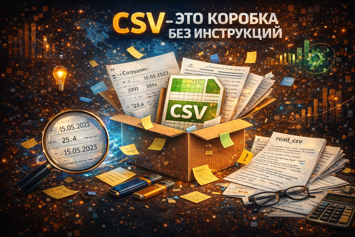 CSV - это как коробка без инструкций. Снаружи это просто текстовый файл, в котором внутри куча сюрпризов: даты строками, числа текстом, пропуски в виде “-”, а русская кодировка превращает “Сотрудник” в какие-то кракозябры. Обычно, при read_csv используют набор основных параметров: задать путь, разделитель быть может и кодировку. Но функционал здесь намного больше, давайте поговорим о том, какие еще могут быть аргументы у этой функции. Данные фишки использую в своей работе регулярно, так как приходится работать с большим числом CSV файлов. Если вам интересно глубже понимать аналитику и работать с данными, то приглашаю вас в свой Telegram-канал, где регулярно выходят короткие заметки и практические примеры. Если оставить pandas угадывать, то колонка с числами легко становится строкой из-за пары мусорных значений. Иногда файл большой, а вам нужно 6 колонок из 60. Это и быстрее, и дешевле по памяти, и меньше шансов случайно притащить мусор. Если пропуски не привести к NaN, вы в любом случа
