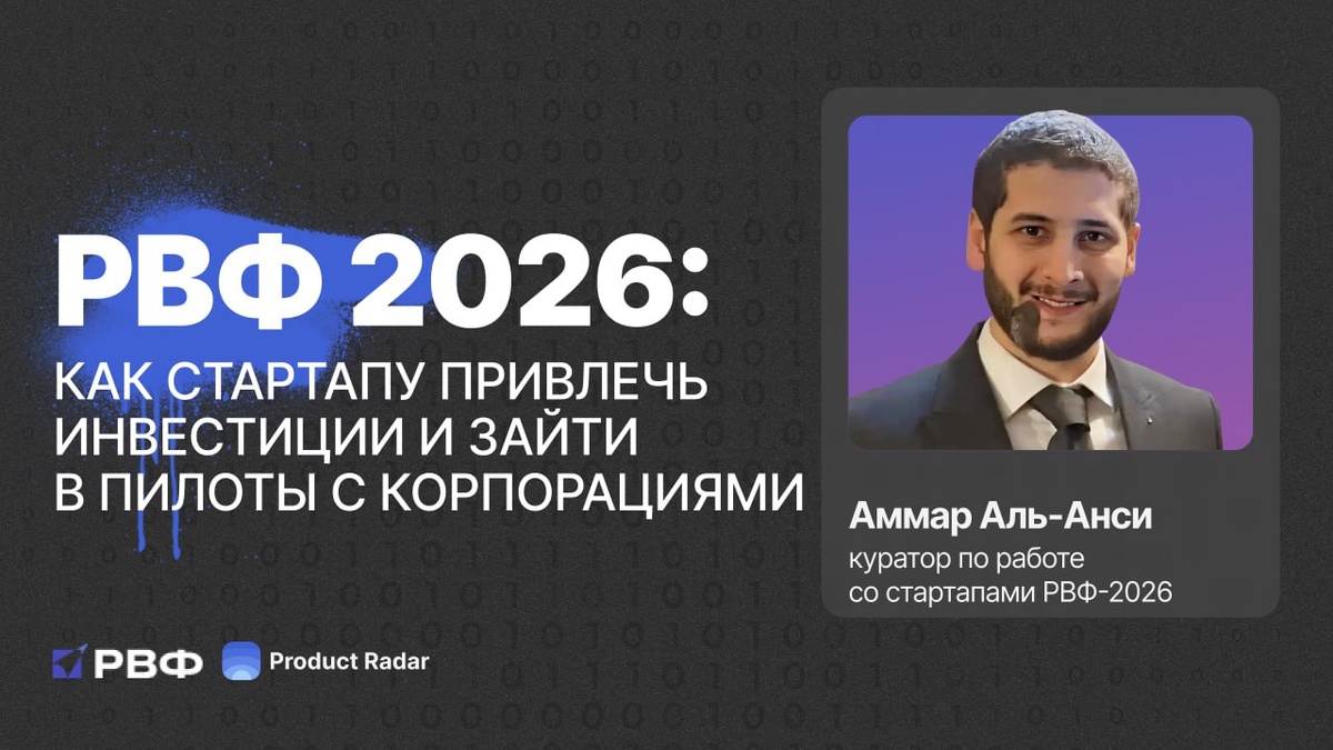 » ⭐️Запись доступна на boosty для «Друзей Радара» (доступно сразу для всех уровней от «Стартап-товарища» и выше ввиду дедлайна на подачу заявки на форум) – https://boosty.to/productradar Внутри: - видео-запись встречи; - текстовый конспект; - презентация спикера. На встрече Аммар Аль-Анси, куратор по работе со стартапами РВФ-2026, подробно разобрал, зачем, как и на каком этапе стартапу участвовать в РВФ-2026, какие возможности дает форум и как извлечь из них максимум пользы. Присоединяйся к «Друзьям Радара» и получи доступ к нашей базе знаний по развитию стартапа с нуля. В ней уже собрано более 50 материалов: от продвижения без бюджета до привлечения инвестиций 🚀💰