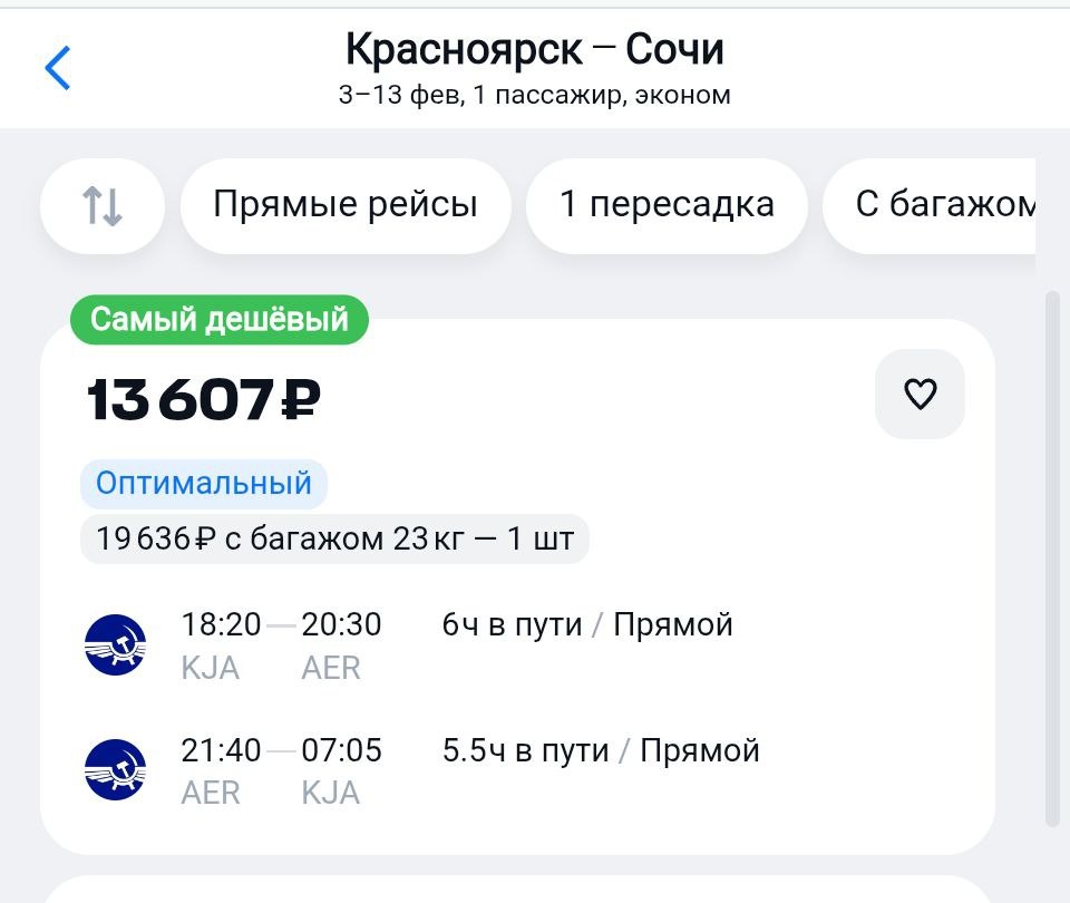 Ну, неплохо, совсем неплохо) https://aviasales.tpm.lv/z1jcL9EB #AER @KJA
