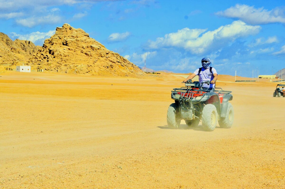 Присоединяйтесь к захватывающему квадро-сафари по Синайским горам и барханам пустыни. Почувствуйте ветер в волосах, когда вы мчитесь по золотистым дюнам, и остановитесь, чтобы насладиться бесподобными пейзажами. В традиционной деревне бедуинов вас ждёт ароматный чай и живое знакомство с местной культурой — яркие впечатления и незабываемые фото обеспечены!