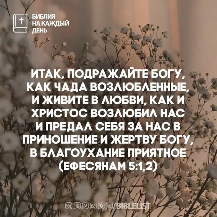 🌄Изучаем Библию вместе🌅 Всем привет, драгоценные! Давайте помолимся вместе. Стих дня: К Ефесянам 5:1-2 7 Январь 2026 г.: Итак, подражайте Богу, как чада возлюбленные, и живите в любви, как и Христос возлюбил нас и предал Себя за нас в приношение и жертву Богу, в благоухание приятное. — К Ефесянам 5:1-2 Размышление над стихом дня Подражание является самой искренней формой лести. Если мы искренне льстим Богу, стараясь быть похожими на Него, возможно подражание является также и самой дорогой формой лести. Понимаете, любовь к Богу - это не просто чувство, возникающее только в нашем сознании или в нашем сердце. Любовь - это когда мы что-то делаем для другого, это действие. Иоанн сказал в 1 Иоанна 4, что мы должны любить делами, а не только словами. Любовь означает пожертвовать собой, своими желаниями, правами, стремлениями, чтобы почитать Бога и служить другим. Именно такого рода любовь может изменить мир, или брак, или семью. Моя молитва Авва Отче, я никогда в полноте не пойму, как Ты м