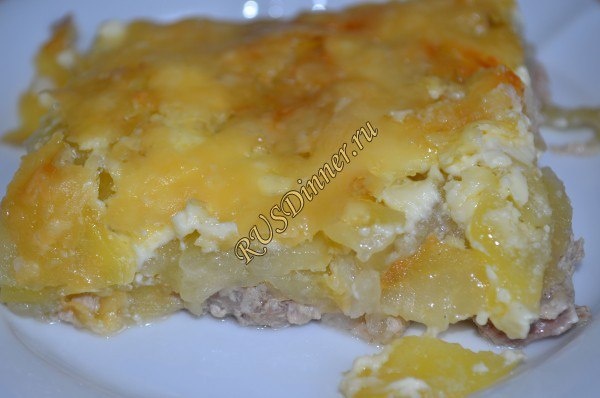 От автора: Мясо по-французски распространенный кулинарный рецепт в России, название конечно на мой взгляд странное, так как в нем используются продукты, которые в России применяются в приготовлении блюд практически ежедневно. Ингредиенты: Свинина - 800 гр. Лук репчатый - 3 шт. Картофель - 600 гр. Майонез - 250 гр. Сыр - 200 гр. Соль - 10 гр. Перец черный молотый - 10 гр. Масло растительное - 30 мл. (для смазывания) Источник: https://rusdinner.ru/page/mjaso-po-francuzski